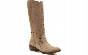 AŻUROWE KOZAKI KOWBOJKI MACIEJKA 2875J-04 BEŻOWE SKÓRA ZAMSZOWA R.36