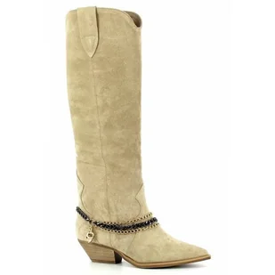 Kozaki z kolekcji by Magda Pieczonka w stylu kowbojskim to trend, którego w tym sezonie nie może zabraknąć w Twojej garderobie! Świetnie wyglądają w duecie z każdą stylizacją dodając jej wyrazistości. Ukryty koturn wydłuży sylwetkę i wysmukli nogi, a dodatkowo wpłynie na komfort chodzenia. Cholewkę u dołu zdobi odpinany, modny łańcuszek, który doda oryginalności i charakteru, a także w magiczny sposób odmieni Twoje buty. Wyróżnij się wybierając nasze kozaki i twórz z nimi oryginalne stylizacje. Zainspiruj się i wybierz buty stworzone dla Ciebie!