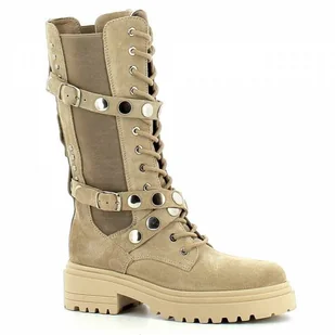 BEŻOWE KOZAKI CARINIIWorkery to hit w świecie mody. Jeżeli cenisz sobie oryginalny design, wygodę oraz praktyczność nie może ich zabraknąć w Twojej szafie! Atutem tego modelu są gumy wszyte w cholewke, które ułatwiają zakładnia oraz idealnie dopasowują się do nogi. Model został wykonany z wysokogatunkowej, naturalnej skóry. Na cholewce zostały umieszczone ozdobne paski z nitami, które pełnią funkcję dekoracyjną, nadając świeżości i niebanalnego wyglądu - w każdej chwili możesz je zdjąć i uzyskać wspaniałe damskie kozaki w innym wydaniu. Workery to obuwie posiadające grubą, solidną podeszwę, kt