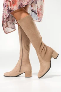 Beżowe kozaki damskie Sergio Leone na niskim obcasie z elastyczną cholewką KZ212-CA