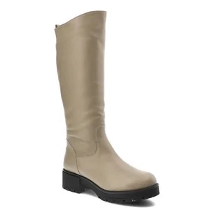 Beżowe Kozaki Karino Damskie Skórzane Buty Zimowe
