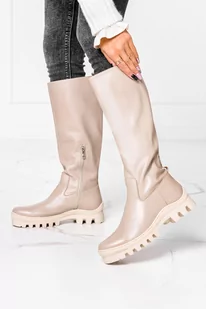 Beżowe kozaki Kati na platformie polska skóra 9032