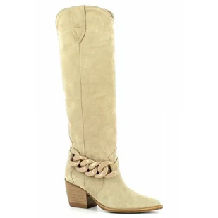 BEŻOWE ZAMSZOWE KOWBOJKI DAMSKIE NA OBCASIE Z ODPINANĄ OZDOBĄ Kozaki damskie w kowbojskim stylu to absolutny must have dla każdej kobiety, która chce poczuć się modnie i stylowo. Wybierz nasze kowbojki, jeśli uwielbiasz cieszyć się delikatnością naturalnej skóry zamszowej. Niski obcas zapewni Ci niekwestionowaną wygodę i stabilność. Zakładanie i zdejmowanie obuwia ułatwi suwak, zaprojektowany po wewnętrznej części cholewki. Modowego charakteru naszym kozakom nadaje niebanalna ozdoba, którą możesz w każdej chwili odpiąć, wpisując je w klimat swojej stylizacji.