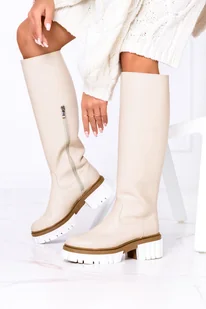 Beżowe kozaki na platformie za kolano POLSKA SKÓRA Casu 2134