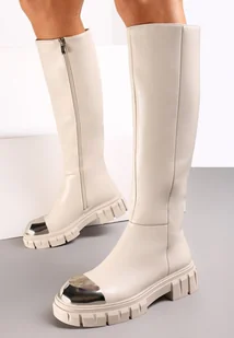 Beżowe Kozaki z Metalicznym Noskiem na Platformie Billiesa - Renee