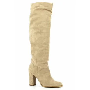 BEŻOWE ZAMSZOWE KOZAKI DAMSKIE NA STABILNYM SŁUPKU