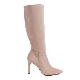 Beżowe zamszowe kozaki na szpilce Shelovet beżowy - ButyModne