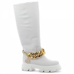Kozaki na grubej podeszwie to hit tego sezonu! Model z najnowszej kolekcji by Magda Pieczonka. Nie sposób wyobrazić sobie bardziej komfortowych butów, które pasują do wielu stylizacji. Cholewka została wykonana z wysokogatunkowej, naturalnej skóry. Model posiada solidną podeszwę, która dodaje lekko buntowniczego i wyrazistego wyglądu. Cholewkę u dołu zdobi odpinany, modny łańcuszek, który doda oryginalności i charakteru, a także w magiczny sposób odmieni Twoje buty.