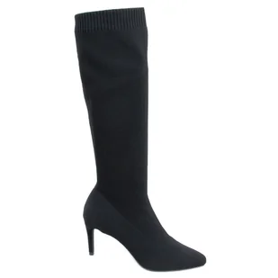 Skarpetkowe kozaki damskie na szpilce. Prezentują się po prostu zjawiskowo! Mają zgrabne noski delikatny w szpic i zamszowy obcas o wysokości 7,5, który pięknie wysmukli Twoją sylwetkę. Wykonane są z elastycznej, skarpetkowej tkaniny zapewniającej idealne dopasowanie. Ocieplacz - delikatne futerko w części stopy. BM Kozaki na szpilce skarpetkowe Rebecca Black czarne.