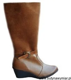 Kozaki na koturnie z wysoką cholewką zdobioną przeszyciami i klamerką pośrodku cholewki Butynawymiar prezentują buty uszyte w całości z wysokiej jakości skóry w kolorze camel - brąz. Kozaki na koturnie wysokim z tyłu na 6, 8 cm, z boku 6, 4 cm, któremu towarzyszy jednocentymetrowa podeszwa. Buty sięgają przed kolano, są zapinane na zamek. Cholewka jest wysoka na około 35 cm. Piękny klasyczny fason sprawdzi się zarówno na co dzień, jak i przy wyjątkowych okazjach.