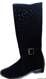 Kozaki ażurowe z ekologicznego zamszu, zapinane na zamek, na obcasie płaskim 2,2 cm Butynawymiar prezentują atrakcyjne kozaki ażurowe typu oficerki z ekologicznej skóry zamszowej w kolorze czarnym, z wysoką cholewką 37,5 cm, na bardzo wygodnym 2,2-centymetrowym obcasie płaskim. Oferujemy buty w niestandardowej tęgości H, co z pewnością ucieszy Panie o wyższych wymaganiach, które do tej pory mogły czuć się zaniedbywane przez tradycyjne sklepy. Podstawowe parametry: Rozmiar: 38 Kolor: czarny Zapięcie: zamek Długość wkładki: