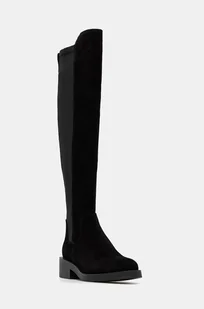 Czarne zamszowe kozaki na płaskiej podeszwie