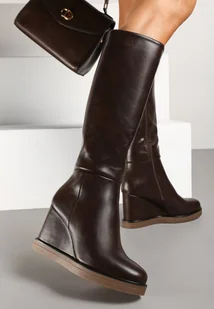 Brązowe Casualowe Kozaki na Koturnie Narisya