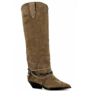 Kozaki z kolekcji by Magda Pieczonka w stylu kowbojskim to trend, którego w tym sezonie nie może zabraknąć w Twojej garderobie! Świetnie wyglądają w duecie z każdą stylizacją dodając jej wyrazistości. Cholewkę u dołu zdobi odpinany, modny łańcuszek, który doda oryginalności i charakteru, a także w magiczny sposób odmieni Twoje buty. Wyróżnij się wybierając nasze kozaki i twórz z nimi oryginalne stylizacje. Zainspiruj się i wybierz buty stworzone dla Ciebie!