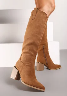 Brązowe Kozaki Vices na Słupku Ozdobione Metaliczną Wstawką Moriane