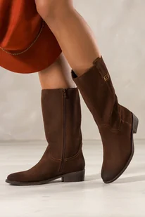 Brązowe kozaki skórzane damskie Sergio Leone kowbojki przed kolano KZ268-S-CA