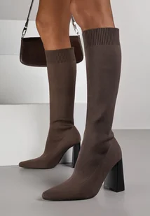 Brązowe Skarpetkowe Kozaki VICES na Geometrycznym Słupku z Noskiem w Szpic Zevra