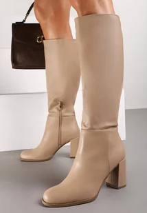 Ciemnobeżowe Casualowe Kozaki na Słupku Zindelina