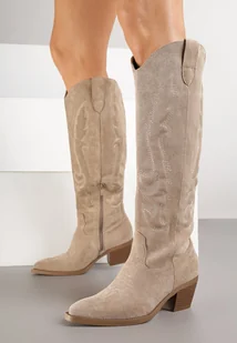 Ciemnobeżowe Kozaki Kowbojki w Klasycznym Stylu z Imitacji Zamszu Lataselia