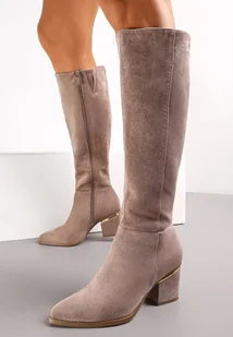 Kozaki na Ozdobnym Słupku Przed Kolano Liamia to idealna propozycja dla fashionistek. Ozdobny słupek sprawia, że buty na suwak prezentują się niezwykle zjawiskowo, a dodatek subtelnych zdobień nadaje im unikalnego charakteru. Kozak idealnie sprawdzi się w chłodniejsze dni, a ich minimalistyczny design w połączeniu z różnorodnymi stylizacjami od casualowych spodni po wieczorowe sukienki zapewni Ci efektowny wygląd w każdej sytuacji. Wystylizuj je z jeansową spódnicą i luźnym swetrem na co dzień, lub zestaw z elegancką sukienką i biżuterią na bardziej formalne wydarzenia!