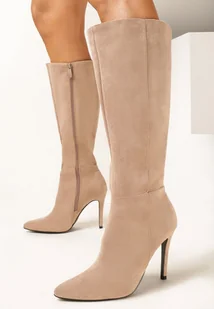 Ciemnobeżowe Kozaki na Szpilce ze Szpiczastym Noskiem Ilenada - Renee