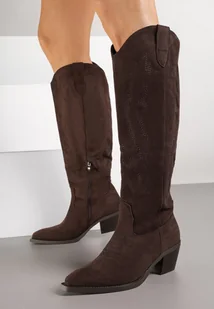 Ciemnobrązowe Klasyczne Kozaki Typu Kowbojki z Imitacji Zamszu Latonassa