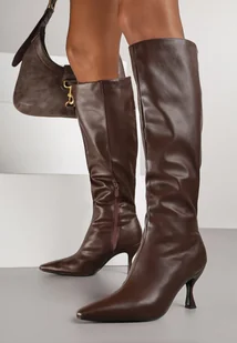 Ciemnobrązowe Kozaki Vices na Kaczuszce z Marszczoną Cholewką Miozea