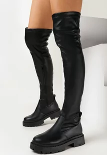Czarne Dopasowane Kozaki za Kolano na Platformie Amante