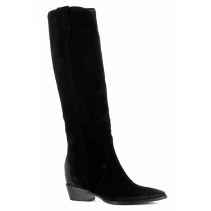 CZARNE DŁUGIE ZAMSZOWE KOWBOJKI NA NISKIM OBCASIE
