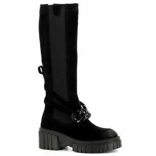 CZARNE KOZAKI CARINIINowoczesne kozaki z wysokiej jakości skóry, zachwycają niebanalnym designem. Wysoka cholewka posiada elastyczne wstawki, które nie tylko ułatwiają zakładanie butów, ale także optycznie wydłużają i wysmuklają nogę. Masywna podeszwa traperowa efektownie dopełni całość. Prezentowany model niewątpliwie wyróżni Cię z tłumu. Buty posiadają również stylową odpinaną ozdobę, która w magiczny sposób odmieni Twoje buty.