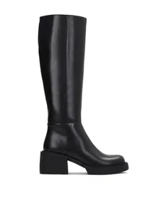 <p><span>Zachwycające awangardowym wyglądem <strong>czarne kozaki</strong> to</span><span> absolutny hit nadchodzącego sezonu. Wykonane z wytrzymałej na wiele czynników<strong> skóry licowej</strong>. Posiadają solidną, dobrze izolującą od podłoża podeszwę oraz szeroki kwadratowy obcas, który nadaje całości niepowtarzalny design. Kozaki przypadną do gustu odważnym kobietom, podążającym za trendami w modzie. </span></p>