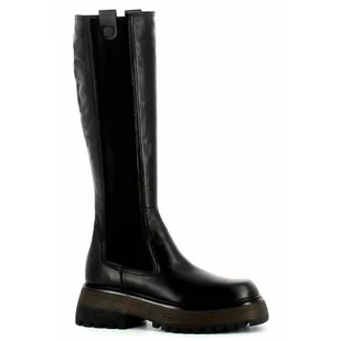 CZARNE KOZAKI CARINIINowoczesne kozaki z wysokiej jakości skóry, zachwycają niebanalnym designem. Wysoka cholewka posiada elastyczne wstawki, które nie tylko ułatwiają zakładanie butów, ale także optycznie wydłużają i wysmuklają nogę. Masywna podeszwa traperowa efektownie dopełni całość. Prezentowany model niewątpliwie wyróżni Cię z tłumu. Kozaki przypadną do gustu odważnym kobietom podążającym za trendami w modzie.