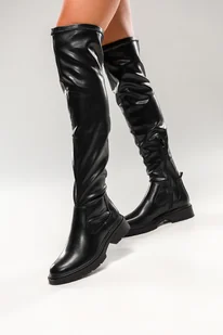 Czarne kozaki damskie za kolano na bieżnikowanej platformie elastyczna cholewka Casu 9156