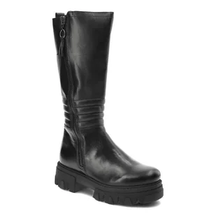 Czarne Kozaki Marco Tozzi Ocieplane Skórzane Buty Damskie
