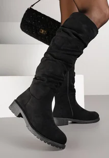 Czarne Marszczone Kozaki Typu Muszkieterki Clafira