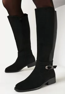Czarne Kozaki Muszkieterki z Ozdobnym Paskiem Vambra