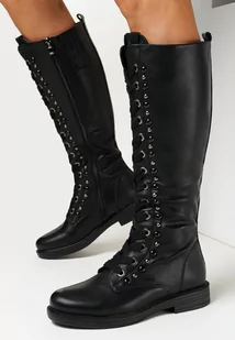 Czarne Kozaki Muszkieterki ze Sznurowaniem Kame