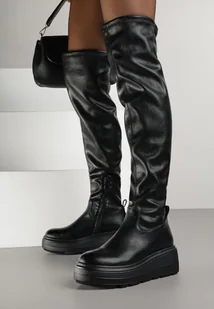 Czarne Kozaki na Grubej Podeszwie w Stylu Cyber Anendria