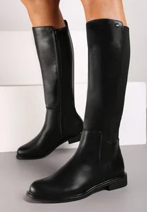 Czarne Kozaki na Płaskiej Podeszwie w Stylu Oficerek z Gumką Ansista