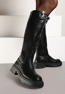 Czarne Kozaki na Płaskiej Podeszwie z Metalicznym Motylem Remivra