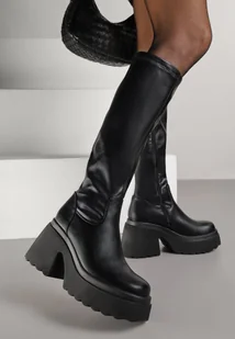Czarne Kozaki na Słupku i Platformie z Dopasowaną Cholewką Avelgissa