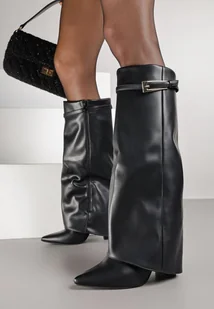 Trend alert! Kozaki na Słupku Typu Kowbojki Ozdobione Klamrą i Wywiniętą Cholewką Nalonea to Twój must-have. Przyciągaj wzrok elegancką klamrą, która nadaje charakteru. Zapnij suwak i ruszaj w miasto. Ich fason świetnie sprawdzi się w casualowych stylizacjach, na przykład z przetartymi jeansami i bluzką, a także na formalnych spotkaniach z trapezową sukienką i minimalistyczną torebką. Dodadzą Ci pewności siebie w każdej sytuacji! Przekonaj się i zamów teraz.