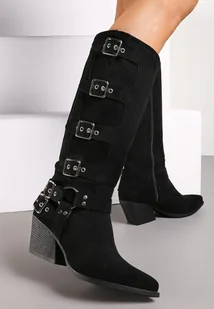 Czarne Kozaki na Stożku z Klamrami i Szpiczastym Noskiem Evaine - Renee