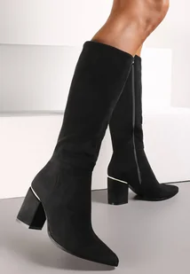 Czarne Kozaki na Słupku Ozdobione Metaliczną Wstawką Serivia
