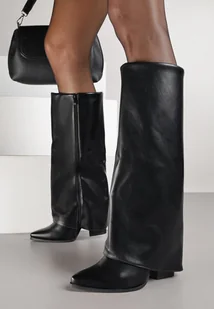 Czarne Kozaki Typu Kowbojki na Stożku z Wywiniętą Cholewką Nalloria