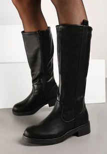 Czarne Kozaki na Płaskiej Podeszwie z Elastyczną Wstawką Miorvade