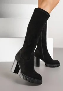 Czarne Kozaki z Imitacji Zamszu na Słupkowym Obcasie Falirelle