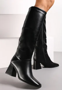 Czarne Kozaki z Kwadratowym Noskiem i Skośnym Stożkiem Larane - Renee