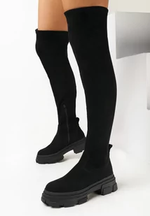 Czarne Kozaki za Kolano na Grubej Podeszwie Fevora