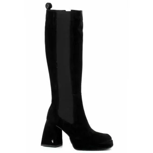 CZARNE ZAMSZOWE KOZAKI DAMSKIE NA PLATFORMIE I STABILNYM OBCASIE